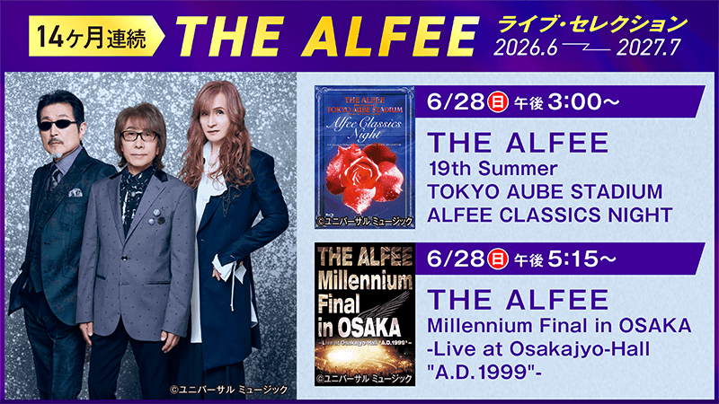 衛星劇場は、毎月THE ALFEE!「<14ヶ月連続>THE ALFEE ライブ・セレクション」を6月より特集放送スタート!
